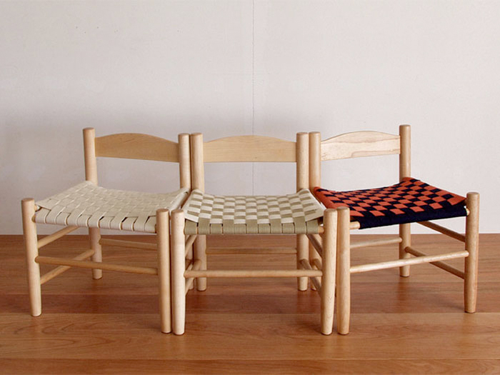 シンプルなデザインの『SHAKERキッズチェア』は軽くて持ちやすく、こどもでも簡単に運ぶことができます。インテリアに合わせて、座面テープの色を組み合わせられるというのもポイント。こちらも大人が座れるので、玄関にちょこっと置いて靴をはく時に腰掛けて、なんていう使い方もできます。
