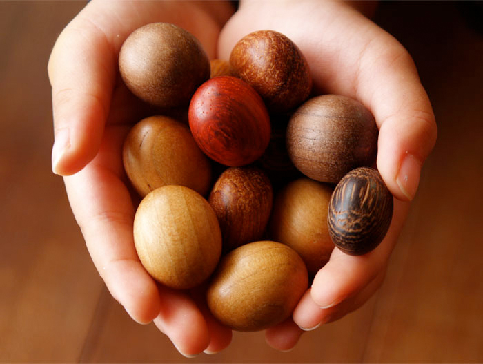 広松木工では家具をつくるときに出る端材も貴重な資源として利用しています。小さな端材をガラガラと機械の中で回して作った『SONOビーンズ』は、大人ならインテリアや凝りほぐし、こどもには立派な玩具になります。お料理の具材だったり、「おかね」になるかもしれませんし、使い道は無限です。