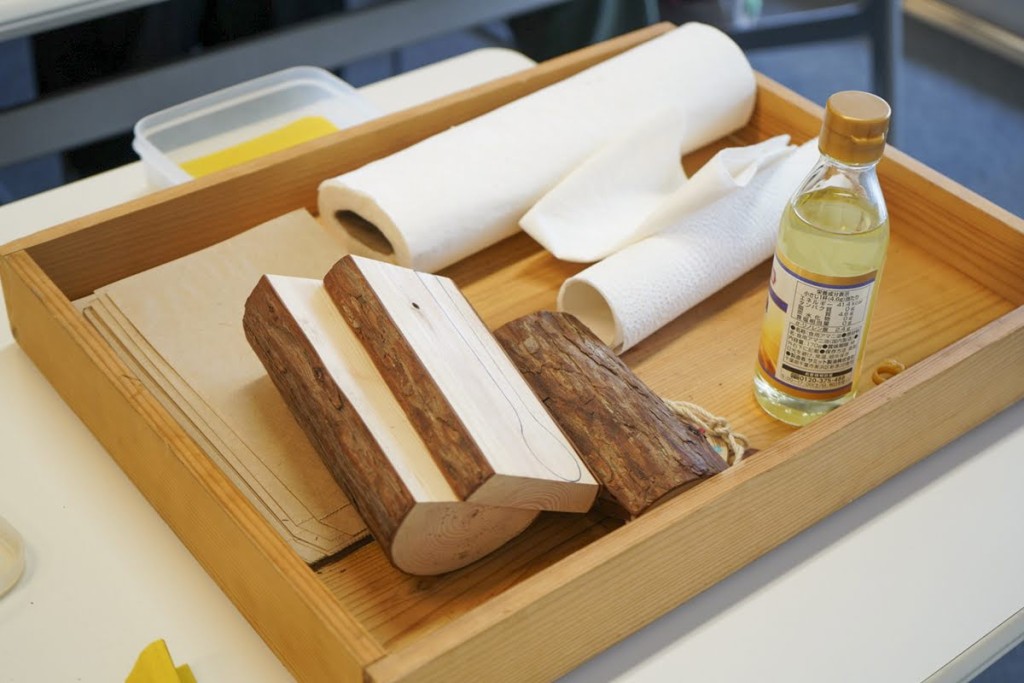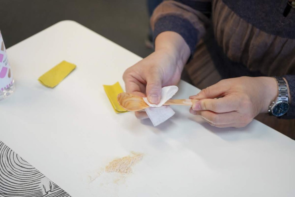 紙やすりや天然オイルで仕上げるだけの簡単な作業なので、小さなお子さんから凝り性の大人の方まで幅広く楽しめるワークショップです。