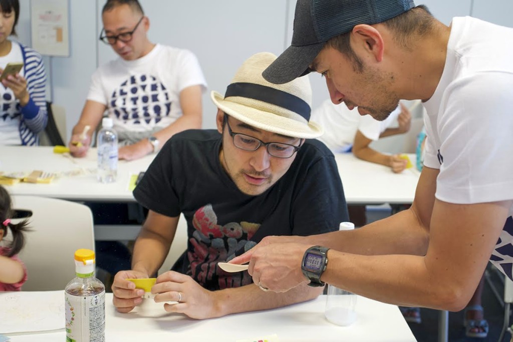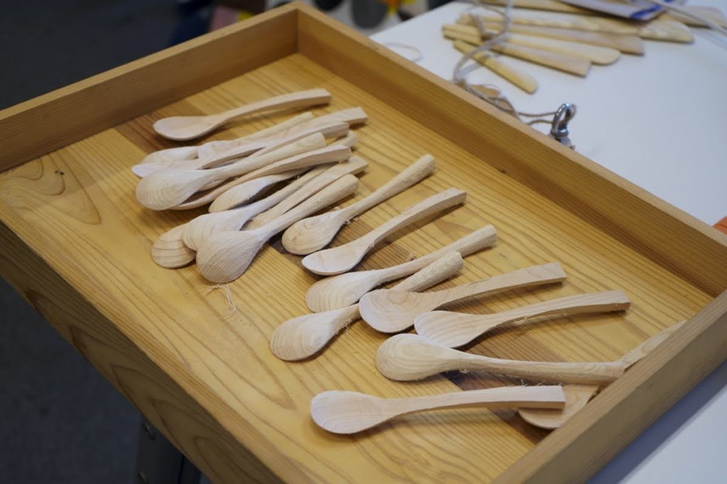 後半のワークショップでは、子供達は目を輝かせながら、大人はスプーンの丸みや肌触りにこだわりながら、時間が足りなくなるほど没頭し、それぞれに木のスプーン作りを楽しんだ笑顔の溢れる時間となりました。