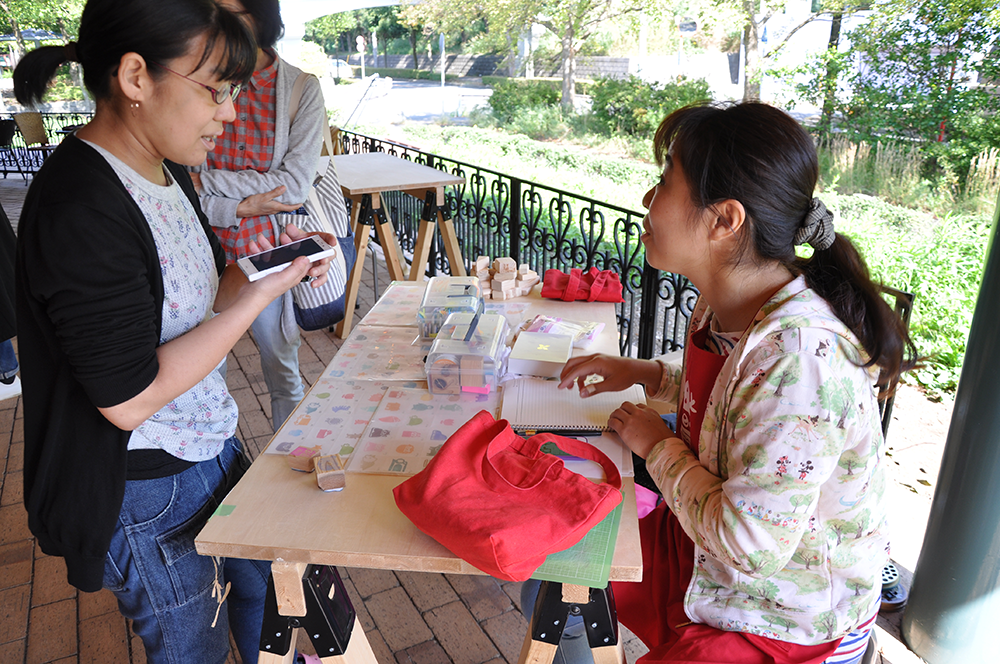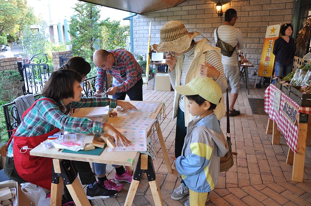 かわいい絵柄と名前を組み合わせる消しゴムはんこのワークショップ。