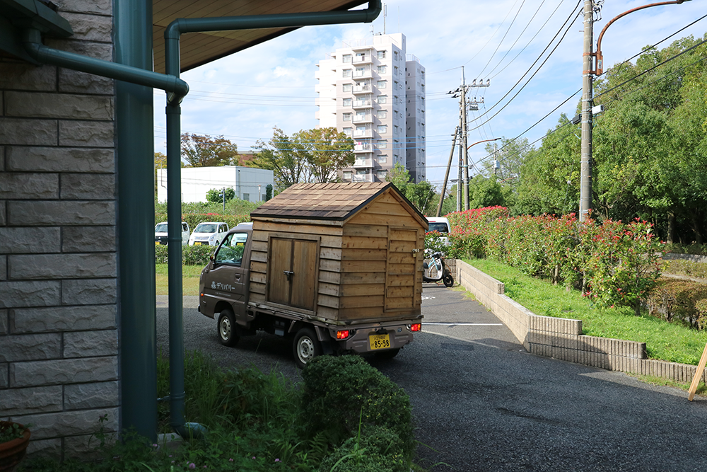 東京チェンソーズの森デリバリーは木の小屋を載せたトラックがトレードマーク。