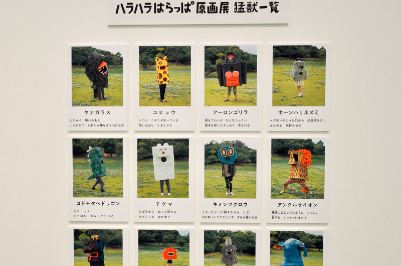 「ハラハラはらっぱ原画展」というタイトルの展示では、原画よりもまず目に入ってくるのが猛獣たちです。