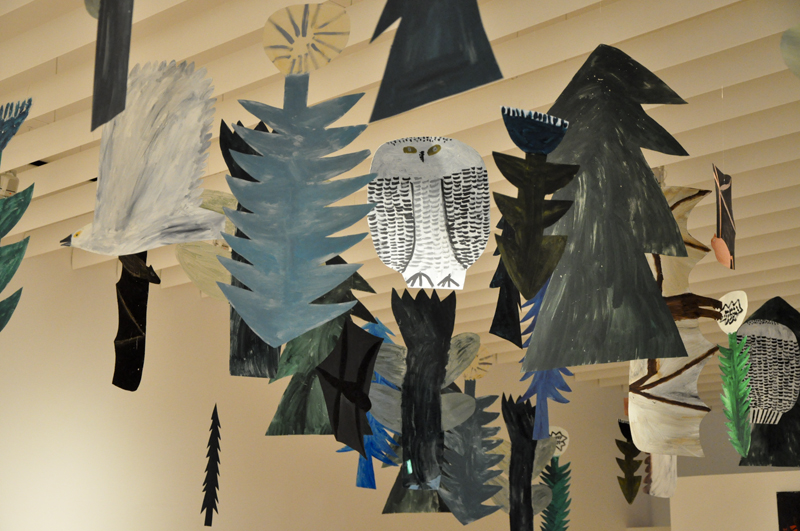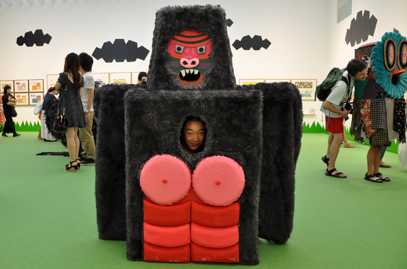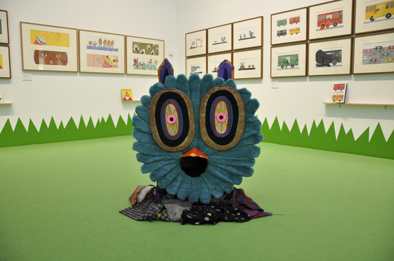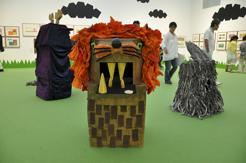 原画展なのに、ハラハラして落ち着いて原画が見られない。そんな演出に、すっかり時間がたつのも忘れて、原画を見たり猛獣を見たり原画を見たり猛獣をかぶったり・・・。さすが、ハラハラ担当のtupera tuperaさん、見る人を巻き込んで一緒に作り出す、にぎやかで楽しい展示空間になっていました。