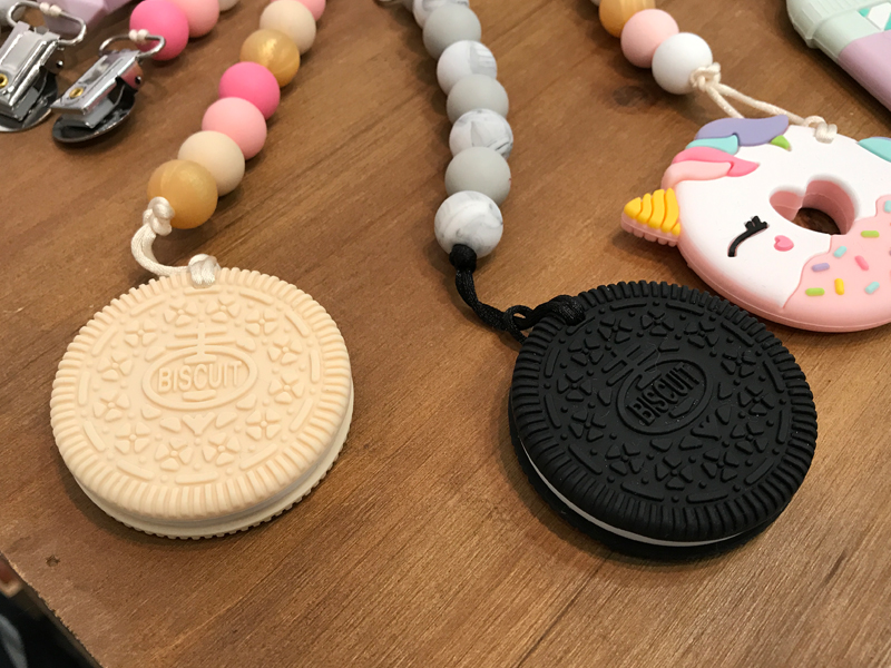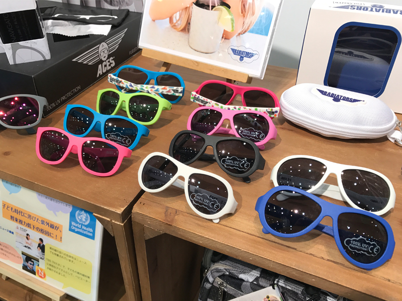 こども用とはいえ本格的なサングラスなので、紫外線をカットするのはもちろん、ゴム製のため踏んでも曲げても壊れないすごいやつです。お子さんの紫外線対策を考えている方におすすめです。あと、こちらのブースで扱っていた歯固めもかわいかったな〜。