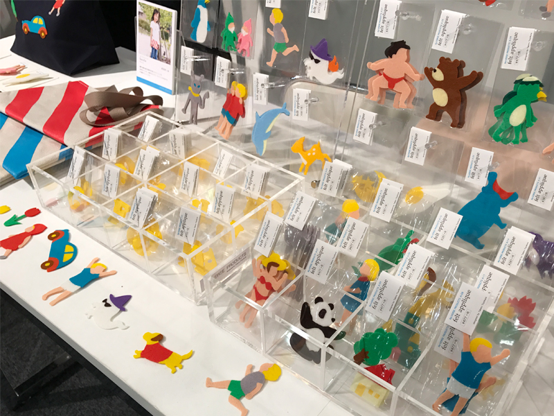 かわいいイラストのアップリケ、コースター、ブローチなどがたくさんありました。これでバッグや帽子をカスタマイズして、自分だけのオリジナルグッズをつくっちゃおうという楽しい商品です。