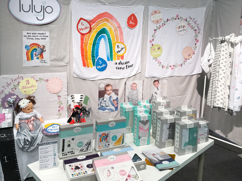 こちらはカナダのおくるみメーカー。普通のおくるみもあるんですが、今回の目玉は数字の書かれたカードをセットにした「マイルストーンカードセット」。1才の誕生日まで使える14枚のカードと一緒に撮れば、思わずSNSに投稿したくなる写真が簡単に撮れちゃうというわけ。これなら「インスタ映え」する写真が簡単に撮れちゃいます。