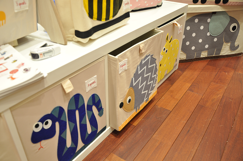 使いやすくて柄の種類が豊富な収納ボックスも人気。「ハリネズミさんのところにしまおうね!」などとお片付けの声かけもしやすいですね。