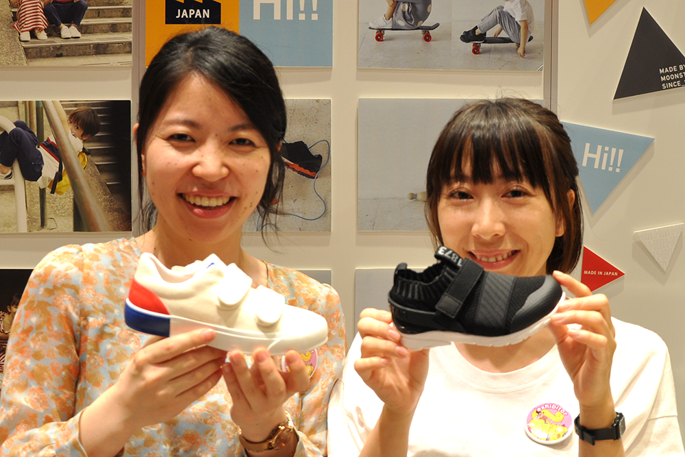 MOONSTARの町田さんと茂田さんにそれぞれのおすすめのシューズをもっていただいてパチリ。