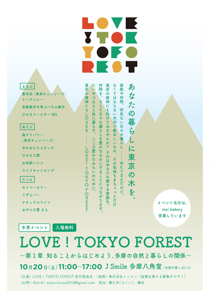 P_TREEの拠点でもある J Smile 多摩八角堂 で、数名の仲間と一緒に「LOVE! TOKYO FOREST」という木育イベントを開催します。