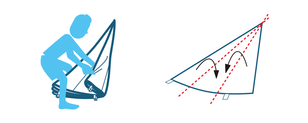 ※サイズの大きいバルーンの場合、ここまでは大人2人で立った状態で行ってください。