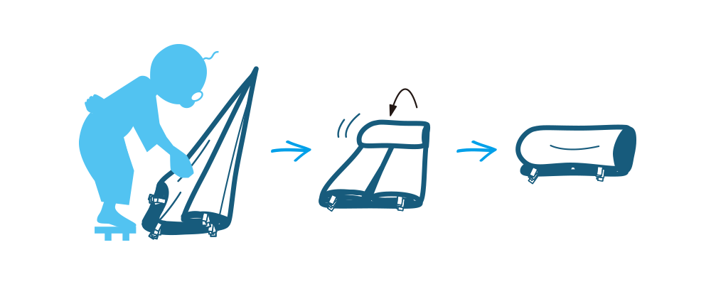 ⑤三つ折りにしたプレイバルーンを巻くようにたたんで収納袋に入れます。