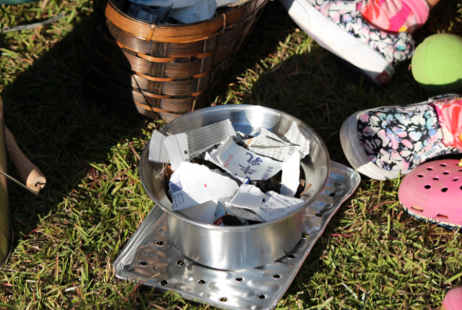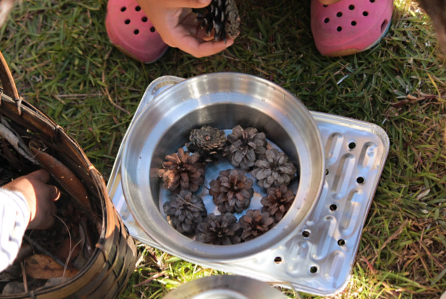 家の中でコンロでお湯を沸かして暖かいものを飲むのは簡単ですが、自分で集めた燃料に火をつけて、水が火の力でお湯に変わることは、こども達の目には新鮮な驚きと喜びになる様です。