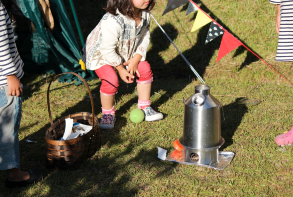 キャンプに行かなくても、海辺や公園(火を使っても良い場所なら)でも使えます。狭いお庭やベランダでも使えるのがケリーケトルのいい所。牛乳パックや雑誌、新聞を燃料に、暖かい飲み物を子ども達が自力で準備できる日は近そうです。ケリーケトルには色々と学ばせてもらっています。